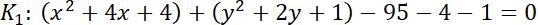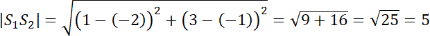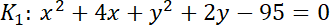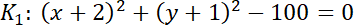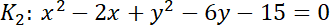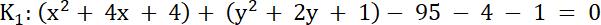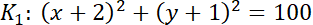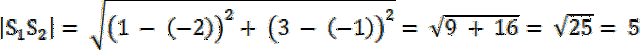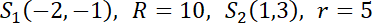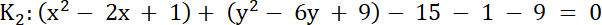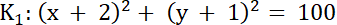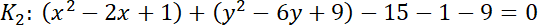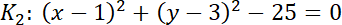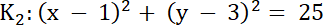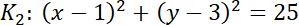 ma współrzędne (1, 3), promień r = 5.