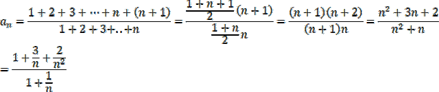 Wylicz granicę. Granica składa się ze stałej i ułamków, ułamki dążą do 0, więc granica jest stała.