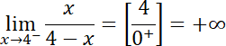 . Ponieważ funkcja zbliża się do 4 z lewej strony, to wyrażenie w mianowniku jest dodatnie, więc masz