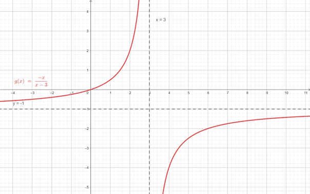 Pamiętaj, że wyrażenie w mianowniku nie może się zerować – tym sposobem określisz dziedzinę. Zbiór wartość możesz określić na podstawie wykresu lub tego, że funkcja nie przyjmuje jedynie wartości z asymptoty poziomej y = -1.
