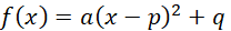 , gdzie a ≠ 0 oraz wierzchołek W paraboli ma współrzędne (p, q)