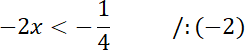 . Pamiętaj, że gdy nierówność dzielisz przez liczbę ujemną, to jej znak zmienia się na przeciwny. Uzyskane rozwiązania przedstaw na osi. Zapisz przedział, do którego jednocześnie będzie należało każde z rozwiązań nierówności.