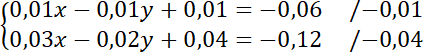 Każde z równań przedstaw w najprostszej postaci. Zauważ, że całe pierwsze równanie należy pomnożyć przez (-2), aby współczynniki znajdujące się przy