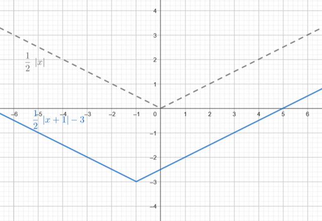 . Następnie każdy punkt znajdujący się na powstałym wykresie przesuń o 1 jednostkę w lewo i 3 w dół, aby powstał wykres szukanej funkcji