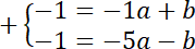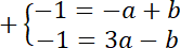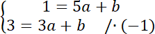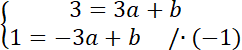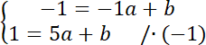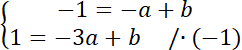 Współrzędne punktów A i B podstaw pod powyższe równanie. Zauważ, że powstanie układ dwóch równań z dwoma niewiadomymi. Całe drugie równanie pomnóż przez -1, aby współczynniki przy