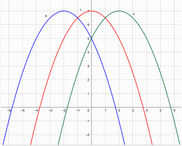 W tym zadaniu musisz zapisać wzory funkcji g i h, a następnie zapisać ich wzory, jeżeli na funkcje te powstały w wyniku przesunięcia wykresu funkcji f o dziedzinie 4;4>oraz f(x)=12x2+7.