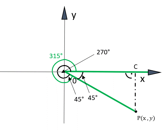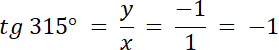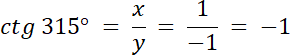 kąt α = 315°, czyli α = 270° + 45°