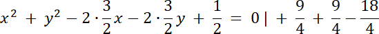 ); promień okręgu r: r = 2