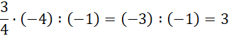 Zauważ, iloczyn liczby dodatniej i liczby ujemnej da wynik ujemny. Następnie dziel dwie liczby ujemne – wynik będzie dodatni. Wykonuj dzielenie i mnożenie na wartościach bezwzględnych i wstaw do wyniku odpowiedni znak.