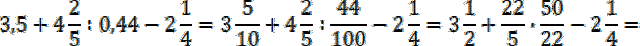 Przepisz liczby całości, a w miejsce liczb po przecinku wstaw ułamek zwykły: w liczniku wpisz liczbę, która stała po przecinku, a w mianowniku – jedynkę i tyle zer, ile miejsc po przecinku miała liczba dziesiętna. Pamiętaj o kolejności wykonywania działań: najpierw dzielenie, a potem dodawanie i odejmowanie. Przed wykonaniem dzielenia zapisz liczbę mieszaną jako ułamek niewłaściwy, dzielenie zastąp mnożeniem przez odwrotność dzielnika. Przed wykonaniem dodawania i odejmowania, sprowadź liczby do wspólnego mianownika.