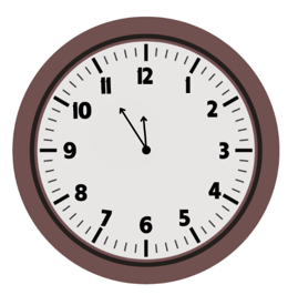 55 min ∶ 5 min = 11, dlatego właśnie tam wskazuje dłuższa wskazówka.