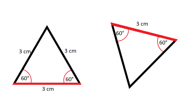 Pamiętaj, że suma kątów w trójkącie jest równa 180°, jeśli więc dwa kąty mają po 60°, to trzeci ma miarę 180° - 60° - 60° = 60°, czyli są to trójkąty równoboczne. Każdy z boków ma długość 3 cm. Aby uzasadnić, że są przystające, możemy skorzystać np. z cechy przystawania trójkątów kbk, która mówi, że jeśli w obu trójkątach odpowiadające kąty mają równe miary i bok między nimi jest równy, to trójkąty te są przystające.