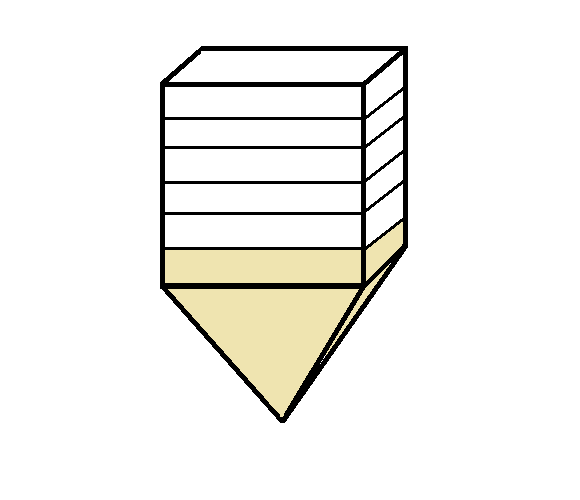 Gdy sześcian i ostrosłup mają taką samą podstawę i wysokość, to objętość sześcianu jest dokładnie trzy razy większa od objętości ostrosłupa. Objętość ostrosłupa jest zatem równa objętości sześcianu i skoro właśnie sześcianu były wypełnione piaskiem, to po obróceniu piasek wypełnia cały ostrosłup oraz ostrosłupa.