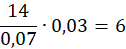 Najpierw podziel liczę 14, przez 0,07, w celu otrzymania 100% liczby, a następnie pomnóż przez 0,03, w celu wyznaczenia 3% tej liczby.