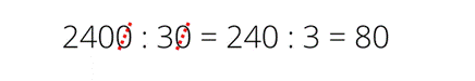 2400 : 30 – w tym działaniu najpierw skreślamy zera z jednej i drugiej liczby, a następnie dzielimy 240 przez 3: