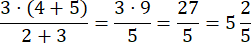 Wykonujemy działanie w liczniku: 3 • (4 + 5) pamiętając o kolejności działań, a mianownik pozostaje bez zmian.