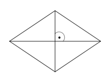 Romb ma przekątne, które przecinają się pod kątem prostym i dzielą się na połowy.
