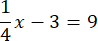 W tym zadaniu przedstaw zdanie: Czwarta część liczby x pomniejszona o 3 i liczba 9 są sobie równe. Otrzymane równanie rozwiąż.
