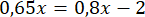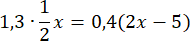 Najpierw pomnóż liczbę 1,3 przez połowę liczby x, a otrzymany iloczyn przyrównaj do iloczynu liczby 4 i