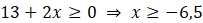 W drugim przypadku 13 + 2x przyjmuje wartości ujemne, a pierwiastek kwadratowy nieujemne. Ponieważ liczba ujemna nie może być większa od dodatniej, nierówność w tym przedziale jest sprzeczna.