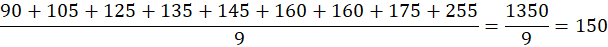90, 105, 125, 135, 145, 160, 160, 175, 255