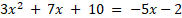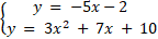 Określ, czy prosta y = f(x) = –5x – 2 jest styczną bądź sieczną funkcji kwadratowej y = g(x) = 3x2 + 7x + 10.
