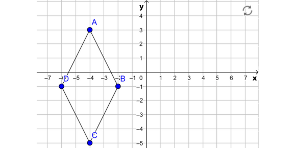 W tym zadaniu narysuj czworokąt o wierzchołkach: A = (-4, 3), B = (-2, -1), C = (-4, -5) i D = (-6, -1). Następnie ustal, ile wynosi jego pole.