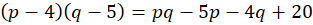 W tym zadaniu przedstaw wyrażenie (p - 4)(q - 5) za pomocą sumy algebraicznej.