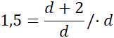 1,5d = d + 2 / - d
