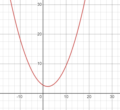 W pierwszej kolejności szukamy miejsc zerowych. Równanie nie ma pierwiastków w zbiorze liczb rzeczywistych. Następnie rysujemy parabolę z ramionami skierowanymi w górę, bo współczynnik przy najwyższej potędze jest dodatni. Wtedy cała funkcja znajduje się nad osią.