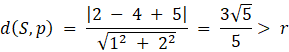 Należy sprawdzić, w jakiej odległości od prostej znajduje się środek okręgu: