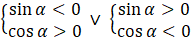 Wyznacz argumenty, dla których spełniona jest zależność: sin α ⋅ cos α < 0 (α ∈ (-180°; 180°)).W tym celu naszkicuj w jednym układzie współrzędnych wykresy funkcji y = sin α i y = cos α na odpowiednim przedziale.