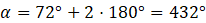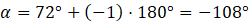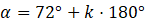 Wyznacz wartości kąta α (α ∈ (-90°; 450°)), które spełniają równanie tg α = tg 72°.