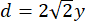 Na początku oblicz długość boku kwadratu, a następnie skorzystaj ze wzoru na jego przekątną: