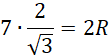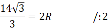 W tym zadaniu musisz obliczyć promień okręgu opisanego na trójkącie ABC, jeśli wiesz, że a = 7