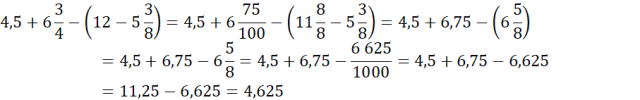 W tym zadaniu w pierwszej kolejności wykonaj odejmowanie ułamków w nawiasie zgodnie z kolejnością wykonywania działań, pamiętając, że minus przed nawiasem zmienia znak na przeciwny. Następnie zamień ułamki zwykłe na ułamki dziesiętne i wykonaj działania tzn. dodawanie oraz odejmowanie.