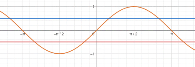 Aby rozwiązać nierówność, zacznij od podzielenia jej obustronnie przez 4. Następnie spierwiastkuj nierówność obustronnie, rozbijając ją tym samym na alternatywę dwóch nierówności. Rozwiąż otrzymane nierówności, korzystając z wykresu funkcji