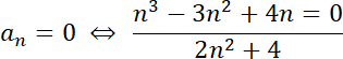 Przyrównaj wzór ciągu do zera i rozwiąż powstałe równanie: