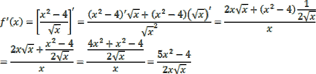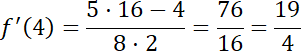 , a następnie określ jej pochodną, a także jej dziedzinę. Wyznacz wartości pochodnej w punktach 1 i 4.