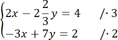 Każde z równań przedstaw w najprostszej postaci. Zauważ, że całe pierwsze równanie należy pomnożyć przez 3, a drugie przez 2, aby współczynniki znajdujące się przy