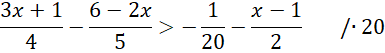 Całą nierówność pomnóż przez najmniejszą wspólną wielokrotność liczb znajdujących się w mianownikach ułamków. Następnie przenieś wszystkie liczby z