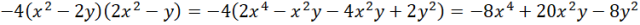 Pomnóż każdy wyraz znajdujący się w jednym nawiasie przez każdy wyraz z drugiego nawiasu, a następnie uzyskane wyrażenie pomnóż przez wartość stojącą przed nawiasem i zredukuj wyrazy podobne, czyli dodaj/odejmij jednomiany podobne.