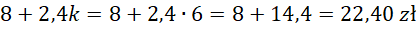 Podaną długość zaokrąglij w dół do liczby całkowitej i uzyskaną wartość podstaw pod wzór podany w treści zadania. Na tej podstawie oblicz koszt przejazdu.