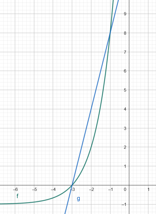 Wyznacz graficzne rozwiązanie nierówności f(x)g(x).f(x)=3x+31,g(x)=4x+12