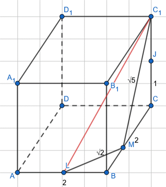 Wyznacz długość przekątnej ściany sześcianu i jej połowy, a następnie dorysuj szukany odcinek tak, aby powstał trójkąt.