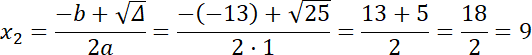 ∆ = b2 – 4ac = (–13)2 – 4 · 1 · 36 = 25