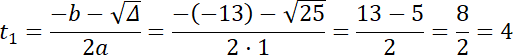 t2 – 13t + 36 = 0