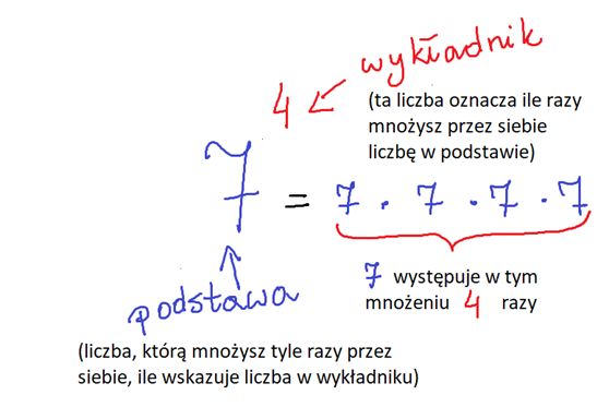 Pomnóż podstawę przez siebie tyle razy, ile wskazuje wykładnik.