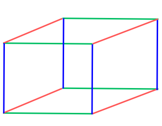 Krawędzie boczne zaznaczono kolorem niebieskim, krawędzie podstawy zielonymi i czerwonym.