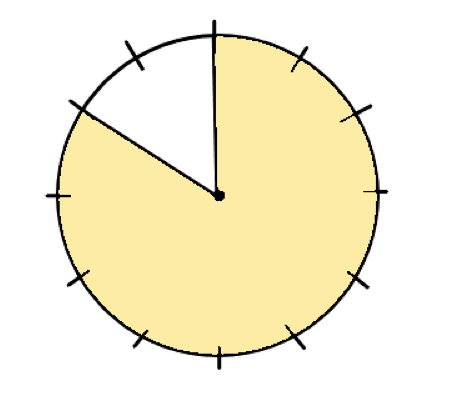 Policz ilu minutom jest równy ułamek godziny. Zamaluj część zegara odpowiadającą temu ułamkowi.